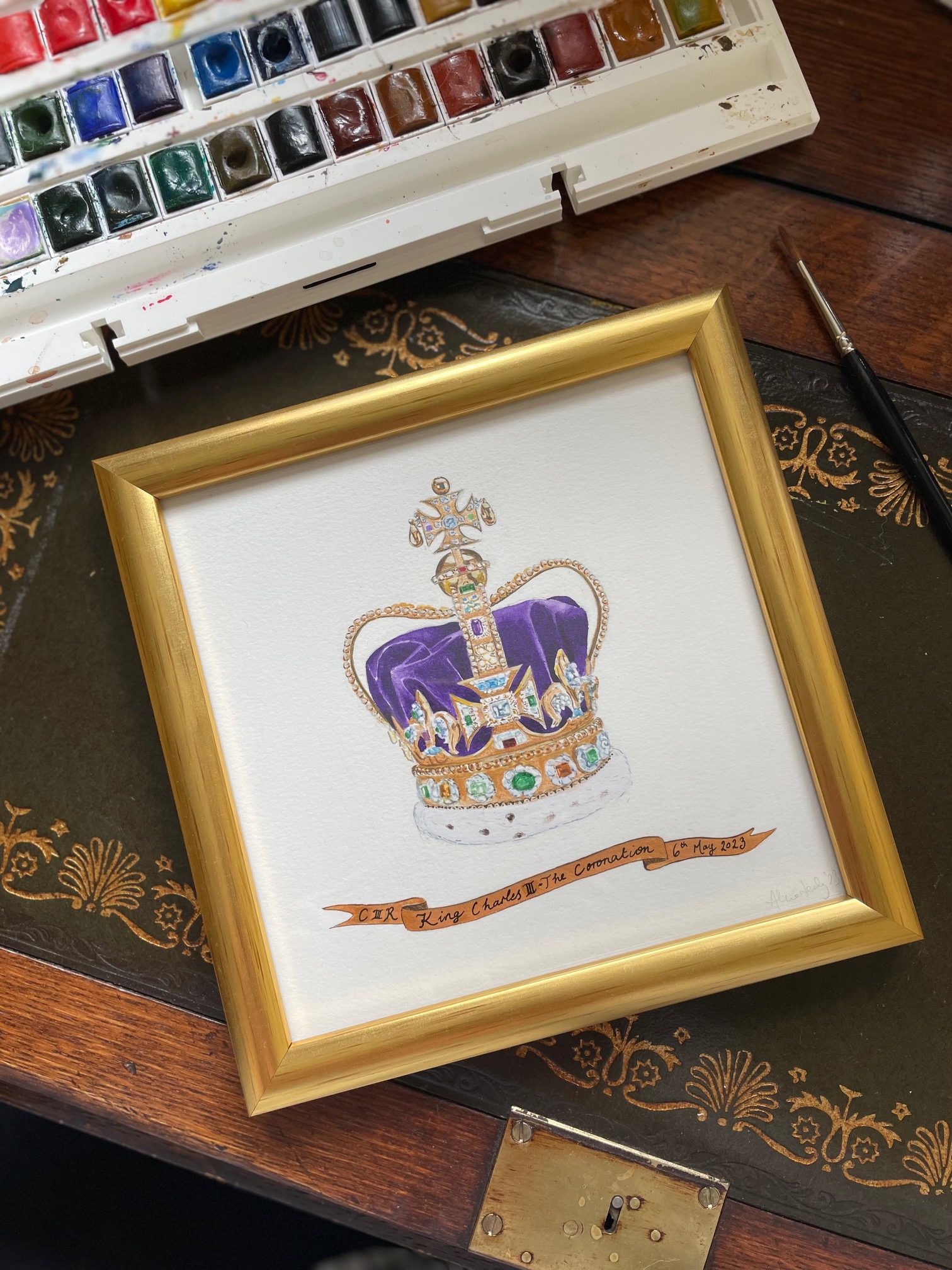 Watercolour and ink illustration to commemorate the coronation of King Charles III. 15cm x 15cm. £185 (including frame).